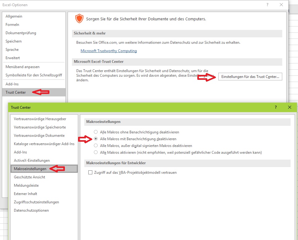 - Deaktivieren Sie Markos in Excel, Access und Co. – oft wird der Virus über Macros in Dateien aktiviert.